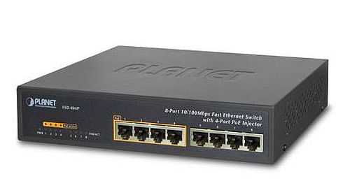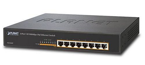 A másik switch az FSD-808P, ami egy 8 portos 10/100 Mbps adatátviteli sebességgel rendelkező Fast Ethernet Switch. A termék a 802.3af PoE Switch család egy újabb tagja, ami összesen 125 wattos teljesítménnyel rendelkező PoE eszközöket tud működtetni és mind a 8 portja képes IEE 802.3af szabvány szerint működő eszközöket vezérelni. Egyszerű, költséghatékony megoldásként szolgál kisebb vállalkozások, kereskedelmi egységek, irodák számára. Az FSD-808P képes 8 PoE eszköz tápellátását szolgáltatni 100 méteres körzeten belül, 4 pár Cat5/5e UTP vezetéken keresztül. Mivel az adat és a tápellátás is egyetlen kábelen fut, ezért nincs szükség kábelezésre és villanyszerelő szaktudásra az üzembe helyezéshez. A 8 port segítségével már egy viszonylag nagy méretű IP kamerarendszert és IP telefonrendszert is be tudunk üzemelni.